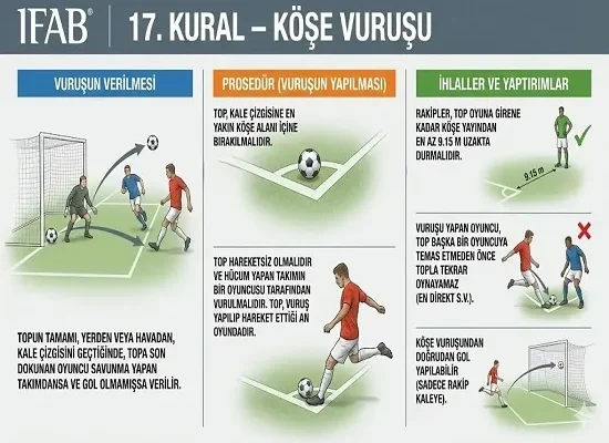 Futbolda bazen bir gol için 90 dakika bekleriz, bazen ise her şey bir köşe vuruşu ile saniyeler içinde değişir. Tribünleri ayağa kaldıran, savunmayı alarma geçiren bu duran top organizasyonu, IFAB (Uluslararası Futbol Birliği Kurulu) tarafından Kural 17 kapsamında titizlikle düzenlenmiştir.